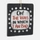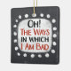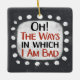 Un design typographique amusant qui dit "Oh! Les Façons Dont Je Suis Mauvais". C'est du texte en noir et rouge sur un rectangle blanc avec des points blancs amusants autour, le tout sur un arrière - plan gris.