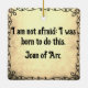 Ornement carré avec un vieux dessin de Jeanne d'Arc sur le devant et une citation sur le dos par Jeanne d'Arc.