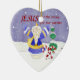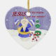 Un merveilleux pour garder le centre de la saison où il appartient ! L'art utilisé pour créer cet ornement de Noël fantaisiste et pourtant significatif a été créé à partir de peintures aquarellées à la main par Audrey Jeanne Roberts. Cet ornement a un bonhomme de neige adorable, un arbre couvert de neige et une paire de sucres de canne debout dans la neige. La neige tombe dans un ciel bleu et le texte dit "JÉSUS est la raison de notre saison !" sur le devant de la scène. Au contraire, la neige tombe et un grand flocon de neige avec votre nom de famille et votre année. Célébrez les fêtes avec une grande joie ! Vraiment un cadeau merveilleux et mémorable au trésor pour une vie!