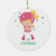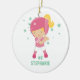 Cet ornement en céramique rond a un joueur de base-ball tenir une batte avec quelques étoiles à l'arrière-plan. Vous pouvez personnaliser le nom et le nombre au fond. Graphiques par des conceptions de Zenware