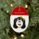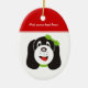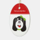 Joyeux ornement personnalisé de chiot idiot, avec un chiot idiot avec arc vert sur la tête.