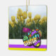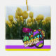 Cet joli ornement de Tulipes Jaunes de Pâques est joliment décoré avec des oeufs colorés de Pâques. Sur le dos, vous pouvez conserver ce texte ou ajouter votre propre texte, si vous le souhaitez. Cette conception a été faite comme un collage photo Tweet pour notre page Twitter.