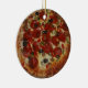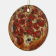 Un ornement qui ressemble à une pizza faite maison fraîche et délicieuse.