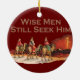 Les hommes sages cherchent toujours Lui Ornement de Noël Caractéristiques trois sages voyageant à dos de chameaux et le ciel de nuit avec l'état. Grand ornement religieux chrétien.