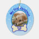 Cet ornement personnalisé de chien d'image a la pièce pour la photo faite sur commande de votre animal familier. Au-dessus de lui dit, "mon premier Noël." Au-dessous de lui a un os avec l'espace pendant votre nom et l'année d'animal familier.