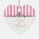 Ce ornement rayé rose et blanc a des détails de défilement argenté et est customisé comme un premier Noël ensemble gardien. Il correspond à la collection mariage montrée ci-dessous, et ferait un bon souvenir de votre journée spéciale, ou un grand cadeau pour les jeunes mariés.