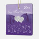 Souvenez-vous de votre journée spéciale chaque Noël avec ce magnifique ornement en lavande et violet ultra-violet avec un IMPRIMÉ sur ruban et arc et une paire de parties scintillant en argent simulé et imprimé sur diamants rejoint broche de coeurs. Des fleurs violettes claires ornent le fond des deux côtés et il y a du texte personnalisable que vous pouvez personnaliser comme vous voulez. Il fait partie de la collection mariage dans le même design. ****VEUILLEZ NOTER que ceci a été conçu pour l'ornement carré. Si vous le modifiez pour qu'il devienne une autre forme, certains éléments peuvent être coupés lors de l'impression. Si vous voulez une forme différente, il est préférable de me contacter à niteowlstudio@gmail.com pour créer une autre forme pour vous.