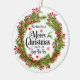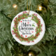 Ce bel ornement rond porte une salutation traditionnelle de vacances. Obtenez-vous un ornement rond editable de Noël et faites à célébration de cette année le meilleur jamais. La conception est une guirlande d'aquarelle avec une salutation noire dramatique et élégante de police.