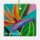 Vibrant Bird of Paradise dessin original de peinture acrylique sur un ornement de vacances en céramique.