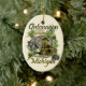 Un design graphique du phare d'Ontonagon, du lac Supérieur, d'un ours noir et d'un porc-épic sur un ornement de Noël Ontonagon Michigan Upper Peninsula. ©2014charmainepaulson