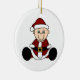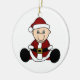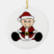 Un bébé habillé dans un casquette de costume et de bas de Père Noël sur un ornement que vous pouvez facilement customiser avec votre propre texte avant la commande.