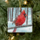 Un beau cardinal rouge dans un pays des merveilles hivernales ornent cet ornement en porcelaine.
