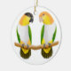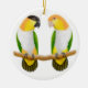 La conception originale de beaux-arts de deux perroquets de caïque par l'artiste Carolyn McFann du studio de ronronnement de deux chats sur un ornement de vacances de qualité pour le perroquet évente.