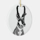 L'avant de cet ornement montre un dessin noir et blanc détaillé d'une antilope de pronghorn, alors que le texte sur le dos peut être édité pour répondre à vos besoins.