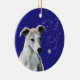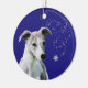 Ornement de bourrasque de neige de vacances de chiot de whippet. Ajoutez votre message personnel au dos utilisant la "personnaliser il" bouton.