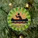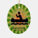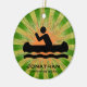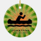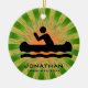 Canoë Ornement personnalisé Noël 20XX. Un canoë contre un arrière - plan de starburst vert et orange. Tout le texte personnalisable, avant et arrière !