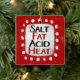 "Salt Fat Acid Heat" est un design de texte amusant avec une forme d'accent blanc entourée de points blancs texturés.