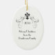 Offrez à un cadeau spécial cette saison des vacances ou n'importe quand avec cet ornement de la Nouvelle-Orléans de cathédrale de St Louis. L'ornement comporte un croquis noir et blanc de cathédrale de St Louis, le carré de Jackson, la Nouvelle-Orléans sur l'avant et un dos de rouleau de Fleur de Lis dessus. Ajoutez votre propre texte pour commémorer cet événement spécial. Fait un grand stuffer de bas !