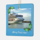 Ornement personnalisable de photo à acheter comme est, ou à modifier en téléchargeant votre propre photo pour remplacer celui montré ! Le texte peut également être changé, si vous souhaitez. L'image est celle de l'arc d'un bateau de classe de soleil s'embarquant sur une croisière des Caraïbes.
