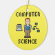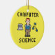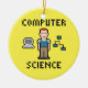 Illustration dans le style de 8 bits dépeignant un informaticien, un ordinateur et un fluxogram.