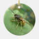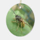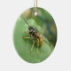 Ce joli ornement de style pendentif présente une photo de gros plan étonnamment détaillée d'un magnifique hoverfly rayé noir et jaune reposant sur une feuille. La photo a été prise en utilisant la macro photographie pour un résultat fantastiquement détaillé.