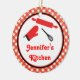 Cet ornement fait un cadeau fait sur commande parfait pour une maman, la grand-mère, la fille, la soeur, la tante ou n'importe quel autre membre de la famille. Il a un thème de cuisine et il comporte des ustensiles de cuisine à l'avant, à une recette pour une famille heureuse sur le dos et à une frontière de plaid. Ajoutez votre propre nom.