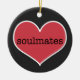 Cet ornement personnalisé de vacances est une grande manière de dire votre amoureux que vous les aimez la Saint-Valentin, Noël, ou un anniversaire. L'avant de ce souvenir personnalisé comporte un coeur rouge, qui lit, des "soulmates" dans une police moderne et de type machine à écrire. Le dos est prêt à être personnalisé. Ce double ornement en céramique dégrossi sera un souvenir prisé pour les années à venir.