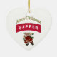 Joyeux ornement du sapeur de Noël. Cet ornement en forme de coeur est décoré d'un côté avec l'onglet Sapper militaire, le Père Noël, et les mots "Joyeux Noël". L'envers est décoré de chiens-tags et des mots "I Love My Soldier".