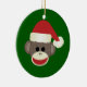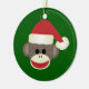 Voici un joyeux ornement de Noël avec un singe chaussette dans un chapeau de Père Noël.