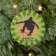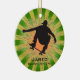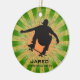 Skateboard Ornement personnalisé Noël 20XX. Un sjateboarder pose sur une planche contre un arrière - plan de starburst vert et orange. Tout le texte personnalisable, avant et arrière !