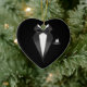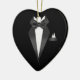 Un ornement en forme de coeur élégant avec le smoking noir des hommes avec la cravate et la poche d'arc avec le mouchoir. Le dos peut être customisé avec le nom, date. Fait un grand souvenir de garçon d'honneur. Morceaux coordonnés disponibles dans le magasin. créé avec des graphiques par la conception de Doudou