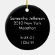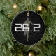 Ajoutez votre nom, titre de marathon, heure ou autre texte à l'arrière de ce marathon coureur personnalisé Noël, Vacances, ou Ornement Auto de voiture. Caractéristiques ombre grise d'un coureur sur le devant avec 26.2, distance marathon dans les nuances de gris noir et blanc. Le dos est noir avec votre texte personnalisé en blanc. Grand cadeau pour commémorer l'achèvement d'un marathon sportif pour un fanatique ou un fan de sport en course.
