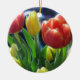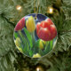 Ornement de tulipes. La tulipe néerlandaise rouge et jaune fleurit en ornement chaud de photo de lumière du soleil de ressort. Cet ornement de cadeau de fleur est entièrement personnalisable ! Ajoutez et personnalisez avec vos textes et images ! Un beau cadeau floral pour l'amant de fleur !