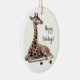 La conception originale de beaux-arts d'une girafe mignonne de bébé sur un ornement de qualité pour la faune évente par l'illustrateur Carolyn McFann du studio de ronronnement de deux chats.