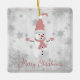 Décorez votre arbre cette saison de vacances avec un joli ornement en céramique rose Snowman Holiday. Le design ornemental présente un mignon bonhomme de neige dans un casquette, foulard et gants ornés de flocons de neige gris et blanc contre un arrière - plan gris grunge. Autres cadeaux et objets de vacances disponibles avec ce design aussi.