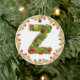 ornement décoré d'un monogramme initial de Noël de Z - cercle. Cette décoration exquise d'arbre de Noël de la lettre Z donnera à votre Noël un contact traditionnel avec une sensation personnalisée moderne. A conçu pour ressembler à un arbre de sapin couvert de présents et des cadeaux cette lettre a sur un ornement circulaire est entourés par un cadre d'or avec les baies rouges. Le haut de gamme et tendent dessus ceci est un luxe abordable pour vous les besoins de décor de vacances. Le double a dégrossi pour l'impact supplémentaire ce vert et l'image rouge sur un arrière - plan de blanc neigeux est un favori avec des entreprises également. Alphabet en entier disponible.