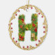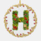 ornement décoré d'un monogramme initial de Noël de H - entourez cette décoration exquise d'arbre de Noël de la lettre H donnera à votre Noël un contact traditionnel avec une sensation personnalisée moderne. A conçu pour ressembler à un arbre de sapin couvert de présents et des cadeaux cette lettre a sur un ornement circulaire est entourés par un cadre d'or avec les baies rouges. Le haut de gamme et tendent dessus ceci est un luxe abordable pour vous les besoins de décor de vacances. Le double a dégrossi pour l'impact supplémentaire ce vert et l'image rouge sur un arrière - plan de blanc neigeux est un favori avec des entreprises également. Alphabet en entier disponible.