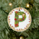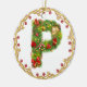 ornement décoré d'un monogramme initial de Noël de P - cercle. Cette décoration exquise d'arbre de Noël de la lettre P donnera à votre Noël un contact traditionnel avec une sensation personnalisée moderne. A conçu pour ressembler à un arbre de sapin couvert de présents et des cadeaux cette lettre a sur un ornement circulaire est entourés par un cadre d'or avec les baies rouges. Le haut de gamme et tendent dessus ceci est un luxe abordable pour vous les besoins de décor de vacances. Le double a dégrossi pour l'impact supplémentaire ce vert et l'image rouge sur un arrière - plan de blanc neigeux est un favori avec des entreprises également. Alphabet en entier disponible.