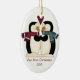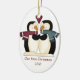 Joli ornement ovale avec l'artisanat primitif du pays de deux pingouins inséparables, avec des écharpes sur. Notre premier Noël 2010 sous les pingouins. Le dos est rouge solide avec du texte personnalisé en blanc. Personnalisez tout le texte pour lire ce que vous voulez. Magnifique ornement de mémoire pour les jeunes mariés.