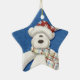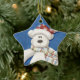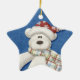 Un ours polaire avec un foulard plaid et un ornement casquette rouge et blanc de flocons de neige.