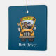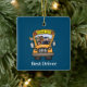 Cette décoration présente mon portrait d'un chauffeur de bus d'école masculin et d'un groupe d'enfants dans le bus. L'avant indique "Meilleur conducteur" mais vous pouvez changer ou supprimer cela. Sur le dos, vous pouvez personnaliser ceci avec un nom et une année. Cela fait un cadeau amusant à donner à votre chauffeur de bus scolaire pour Noël, ou Journée d'appréciation du conducteur de bus scolaire (le 4e mardi d'avril) ou tout simplement comme un cadeau à tout moment. En raison du style design, cela ne peut être acheté que sur des ornements CARRÉS seulement! Conçu par Sheila Cicchi, Brownielocks.com. Tous droits réservés.
