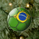 Le drapeau du Brésil a gravé en refief à travers un ballon de football sur un ornement en céramique bilatéral.