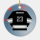 Customisez cet ornement du Jersey de joueur de hockey avec votre nombre et nom d'équipe sur l'avant et votre dos de nom et de nombre dessus. Fait un grand cadeau pour votre joueur de hockey préféré ou fait également un grand cadeau d'équipe. Grand pour le lycée et les cadeaux intra-muros de Ligue de Hockey !