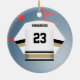 Customisez cet ornement du Jersey de joueur de hockey avec votre nombre et nom d'équipe sur l'avant et votre dos de nom et de nombre dessus. Fait un grand cadeau pour votre joueur de hockey préféré ou fait également un grand cadeau d'équipe. Grand pour le lycée et les cadeaux intra-muros de Ligue de Hockey !