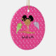 C'est un ornement adorable de Noël pour ce gymnaste dans votre vie ! C'est un gymnaste mignon. Elle porte une combinaison rose et une médaille autour de son cou. L'arrière - plan est rose indien avec le pois blanc. Elle saute dans le ciel faisant une fente. À côté de elle est une étoile filante de lavande et vert clair de l'autre côté. Vérifiez les nombreuses autres conceptions et couleurs dans cette ligne. Aimez ce souvenir pour beaucoup, beaucoup d'années ! illustrations de ©JW