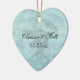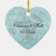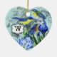 Notre ornement en forme de coeur d'oiseaux chanteurs de mariage est ainsi assez et fait un grand cadeau pour les couples de mariage. Comporte de beaux oiseaux bleus, iris, et conception vintages de nénuphar. Ajoutez facilement les noms des jeunes mariés, l'initiale de monogramme, et la date de mariage pour personnaliser !