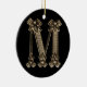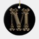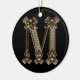 Photo de la lettre "M" d'une goupille initiale vintage. L'image de la lettre "M" est des deux côtés de l'ornement.