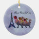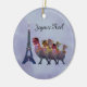 Illustration graphique de trois poules françaises à Tour Eiffel pour les vacances. Éclairez vers le haut de la saison avec cet ornement de thème de Noël.