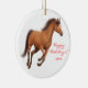 Conception originale de beaux-arts d'un cheval galopant de pur sang de baie par l'illustrateur/concepteur Carolyn McFann du studio de ronronnement de deux chats sur une qualité et de l'ornement personnalisable de vacances de Noël pour les fans équines.