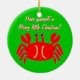 Donnez à une peu d'acclamation de Noël cette saison des vacances avec notre ornement heureux de Noël de crabe. Un petit crabe rouge heureux avec la salutation, "ont vous-même un Joyeux petit Noël" dans le lettrage blanc avec des points culminants rouges derrière le texte. L'arrière - plan est un vert lumineux de Noël. Un ornement d'amusement à montrer ou donner comme cadeau. Libérez pour customiser n'importe quelle manière que vous aimez.